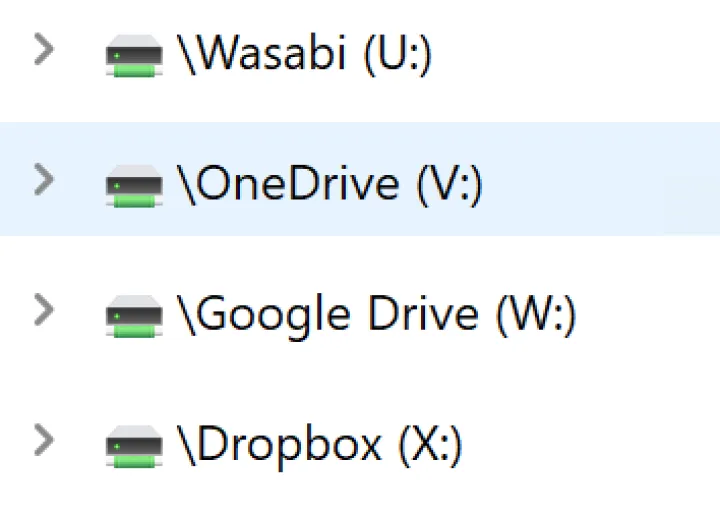 这些“云存储管理器”将您的在线存储服务、以及FTP/SFTP和WebDAV连接集成到您的操作系统的文件和文件夹管理器中:Windows资源管理器、MacOS Finder等。每个连接看起来都像伪本地或网络驱动器,带有一个真实的驱动器号,其行为与真实的操作一样,只是速度稍慢一些。