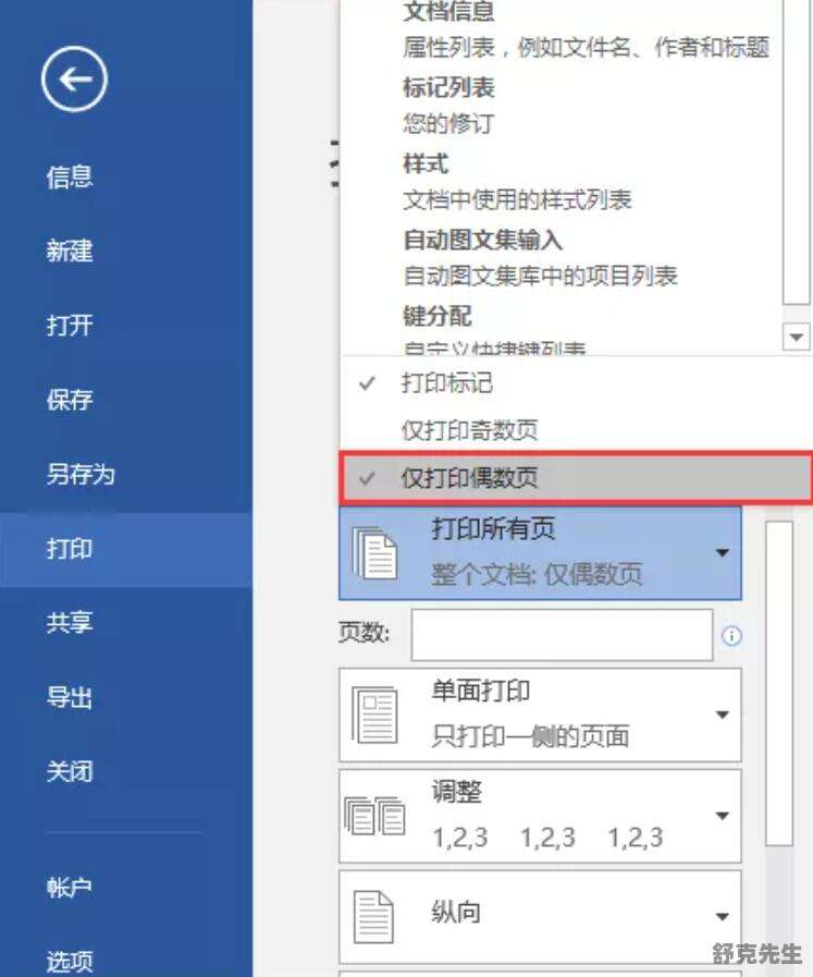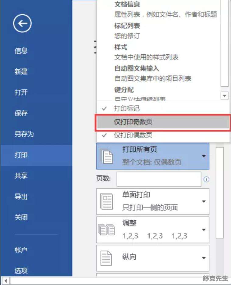1、点击【文件】-【打印】命令或者按【CTRL+P】键,调出打印界面,在“设置”栏中选择“打印所有页”选项,在弹出的列表中选择“仅打印奇数页”。