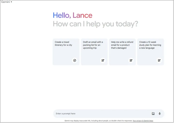 在双子座,你可以说出你的问题,而不是打字,并听到大声回答。提供你的位置,双子座会带你去附近的地方和活动。让双子座撰写内容,它会提供几个不同的文本草稿。下面是如何访问双子座以及你应该首先尝试的内容。