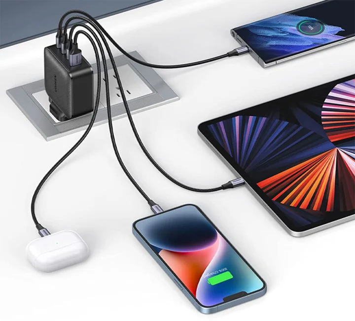 如果你想使用多个充电端口,考虑一下你的最高要求–比如,笔记本电脑需要65W,手机需要15W,智能手表或耳机可能需要5W。功率更高的充电器可以在给笔记本电脑供电的同时,将多余的电量分配给其他连接的设备。