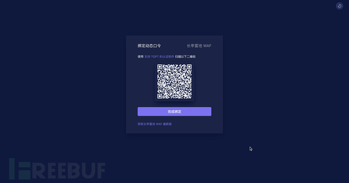 浏览器打开后台管理页面https://<waf-ip>:9443。根据界面提示,使用 支持 TOTP 的认证软件或者小程序扫描二维码,然后输入动态口令登录: