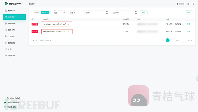 通过浏览器,你将会看到雷池已经发现并阻断了攻击请求。